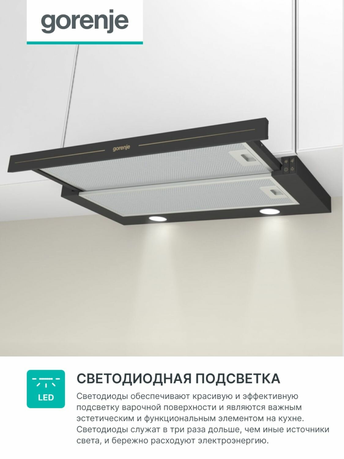 СохранитьВытяжка встраиваемая Gorenje BHP62CLB антрацит управление: кнопочное (1 мотор) интересное: