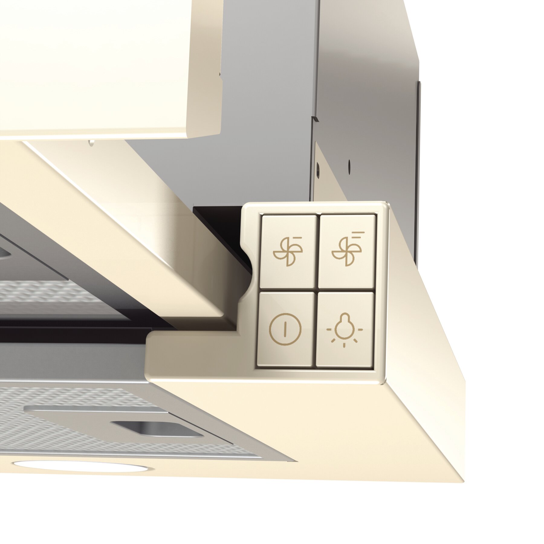 Встраиваемая телескопическая вытяжка, Цвет вытяжки/короба: Слоновая кость, Отвод 435 м3/ч, механические переключатели, светодиодное освещение