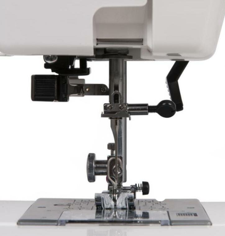| Плюсы: | Шьёт всё, от туристской снаряги до кукольных платьиц. Сама исправляет огрехи вроде неровной подачи ткани, неудачного подбора иголки или неуверенной работы педалью. Отстутствуют выступающие мелкие хрупкие части, даже при работе вся верхняя нить, включая катушку, полнотью закрыта крышкой (да и при хранении без чехла не пылится). |
