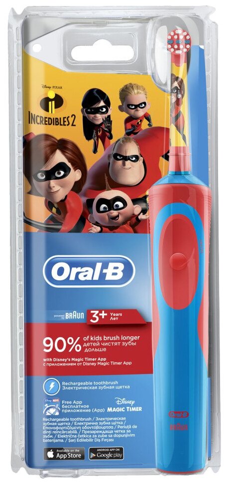 СохранитьЭлектрическая зубная щетка Oral-B Vitality Kids D12.513K Incredibles2 красный/синий интересное: