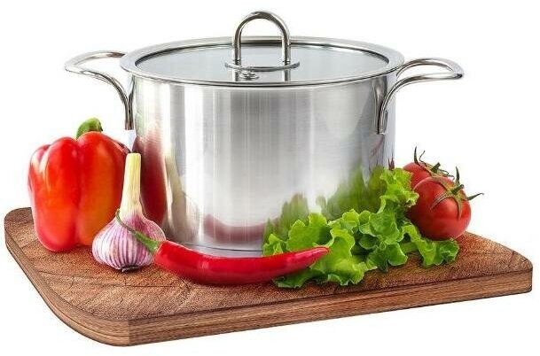 | Отзыв: | Успешно использовал не только как кастрюлю для первых блюд, но и в качестве сотейника. При пассеровании и тушении ничего не пригорает, металл не меняет свой цвет.