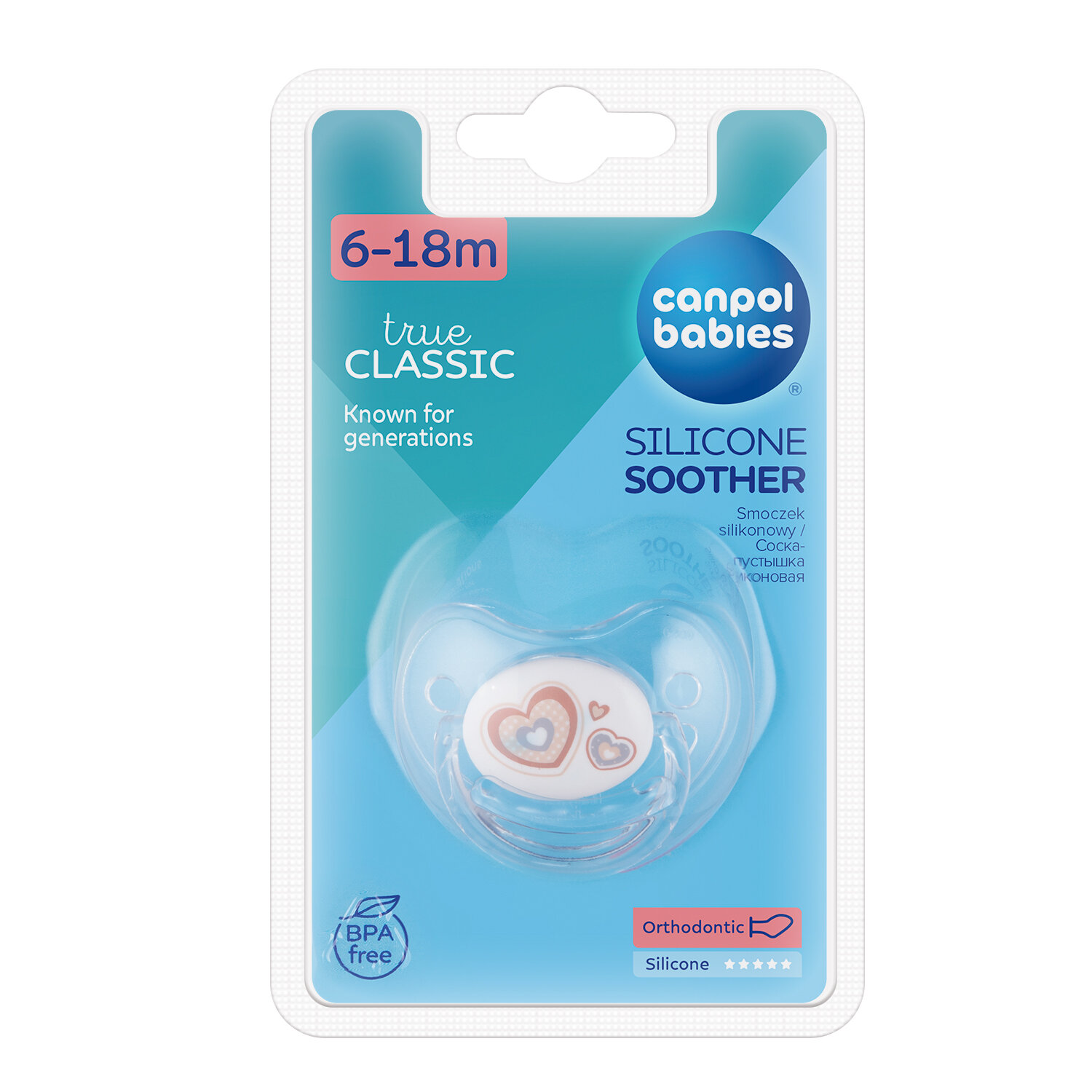 Пустышка Canpol Babies симметричная силиконовая, 6-18 Newborn baby, цвет: голубой