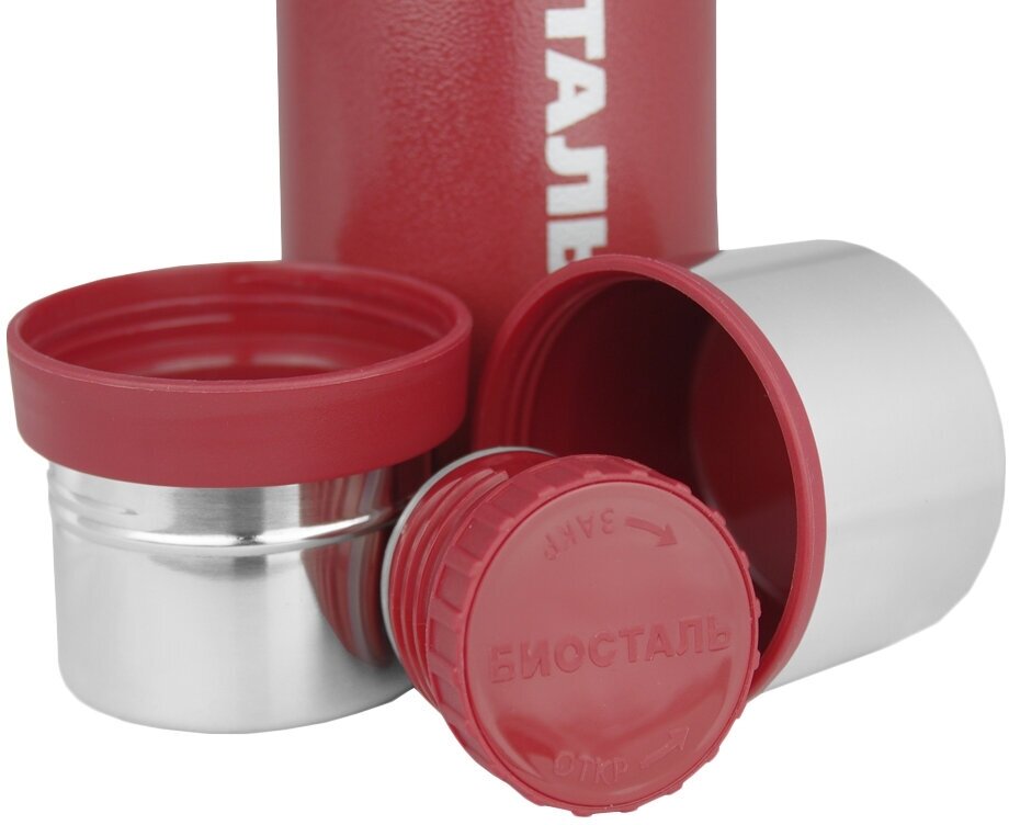 Термос "биосталь-охота" с узкой горл.,2 чашки, красный, 1.2 л. NBА-1200R