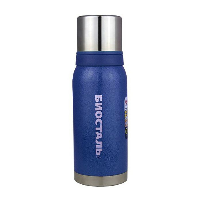 Термос "биосталь-охота" с узкой горл., 2 чашки, синий, 1.0 л. NBА-1000B