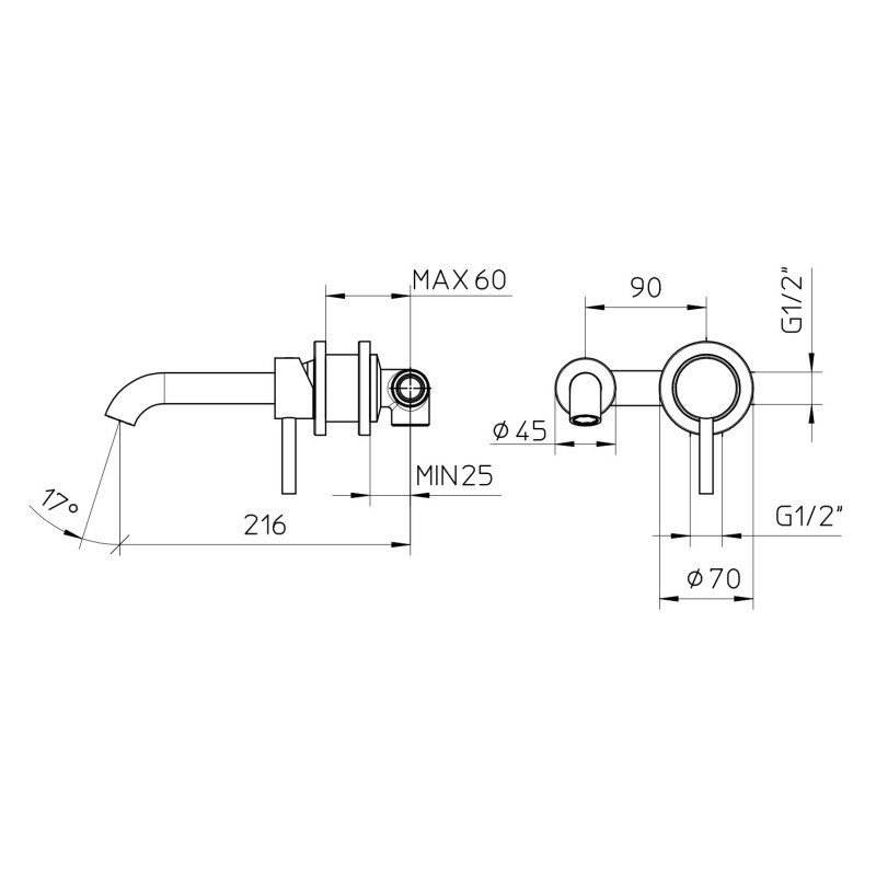 Смеситель для раковины Bossini OKI настенный, встраиваемый, с встроенной частью, цвет хром (Z005302.030)