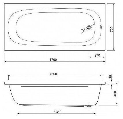Акриловая ванна Cezares Piave 170x70 PIAVE-170-70-42-W37 без гидромассажа