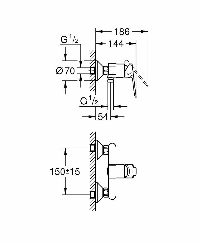 Смеситель однорычажный для душа GROHE BauCurve 23631000, Longlife 35 мм