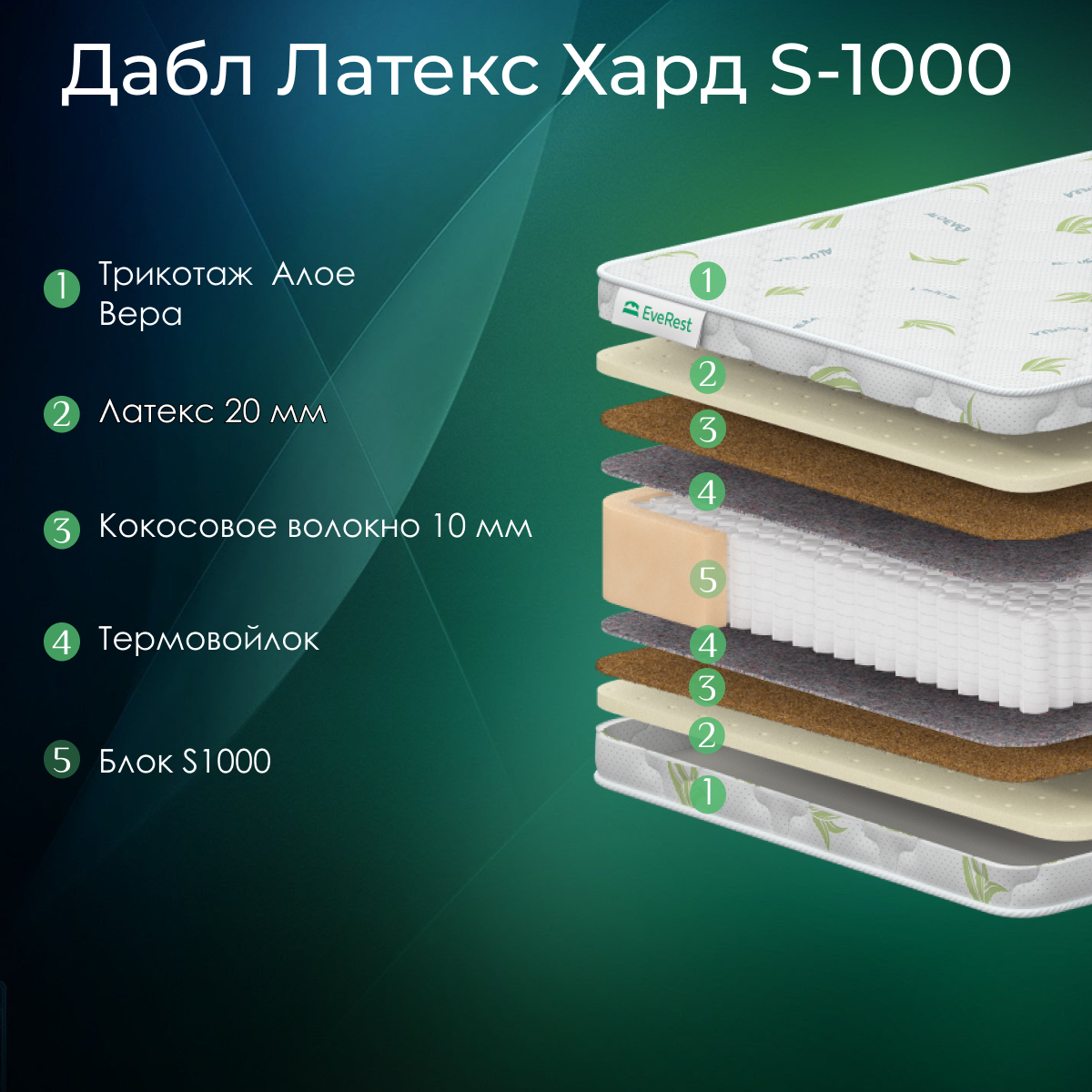 матрас Everest Мидл Дабл латекс хард S1000