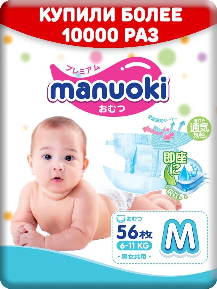 Подгузники MANUOKI М (6-11 кг) 56 шт