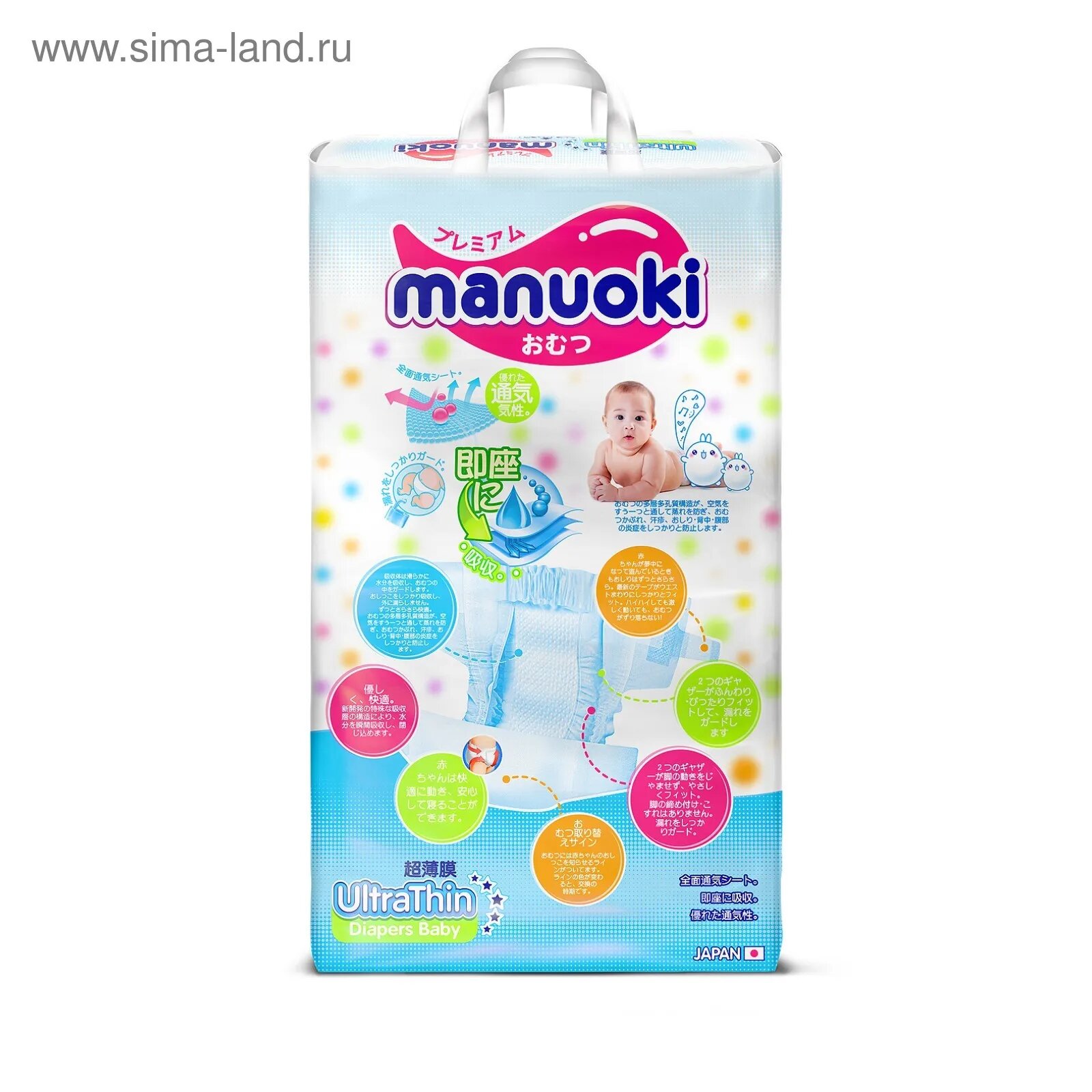 Купить Подгузники Manuoki JPM006 Ultrathin M (6-11 кг) 56 шт