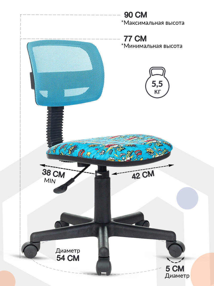 Кресло детское CH-299 голубой TW-31 сиденье мультиколор бум сетка/ткань крестов. пластик / Компьютерное кресло для ребенка, школьника, подростка