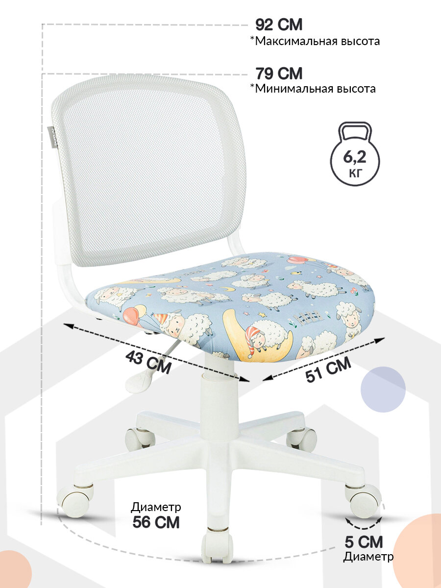 Кресло детское CH-W296NX светло-серый, овечки сетка/ткань крестов. пластик белый / Офисное кресло для оператора, школьника, ребенка, для дома