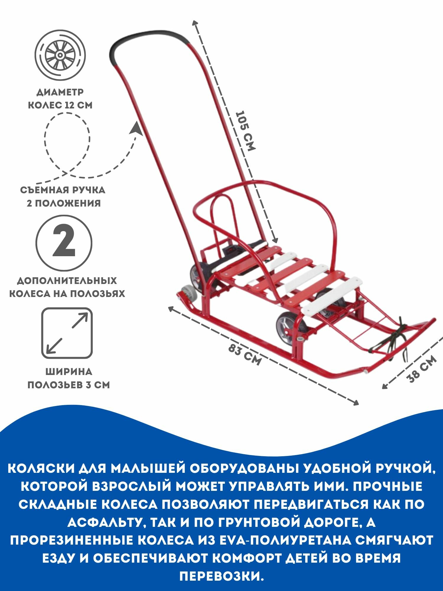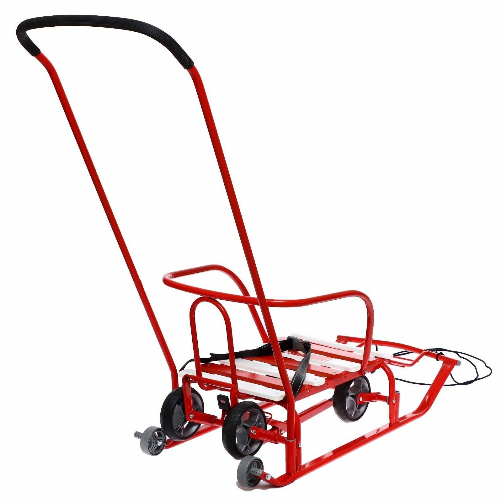 Санки Тимка 5 Универсал Т5У/К2 красный /Ника/ спинка, толкатель, колеса