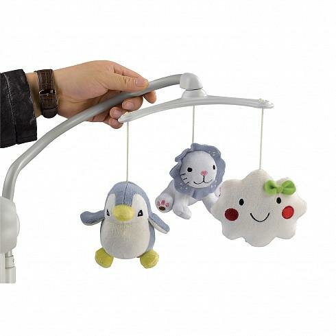 | Минусы: | Игрушки прямо над лицом малыша, но их можно убрать. |