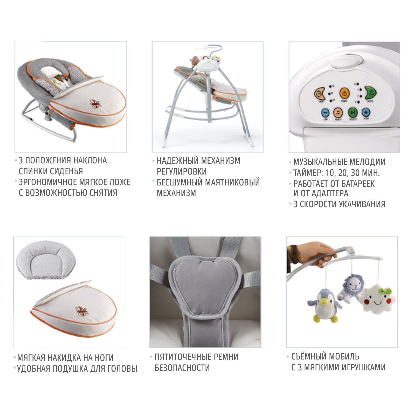 | Отзыв: | Эти качельки просто настоящая находка для занятых молодых мамочек. Они отлично укачивают мою дочку и поют ей песенки, а я могу спокойно поработать не отвлекаясь на ребенка. У них есть несколько скоростей и мелодий на выбор. |