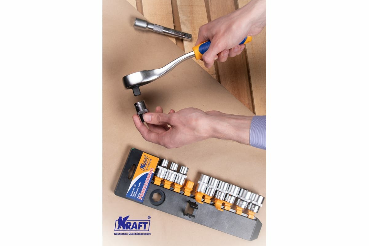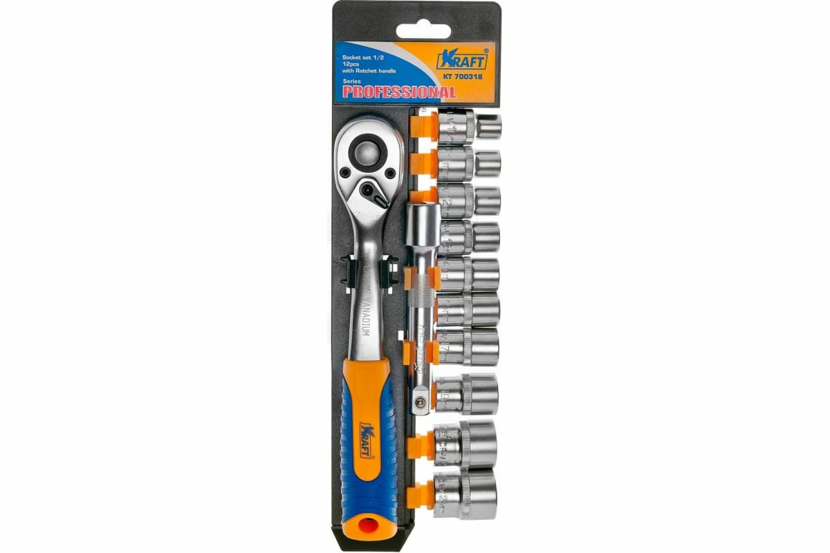 Набор торцевых головок Kraft "Professional", с трещоточным ключом, 1/2", 12 предметов