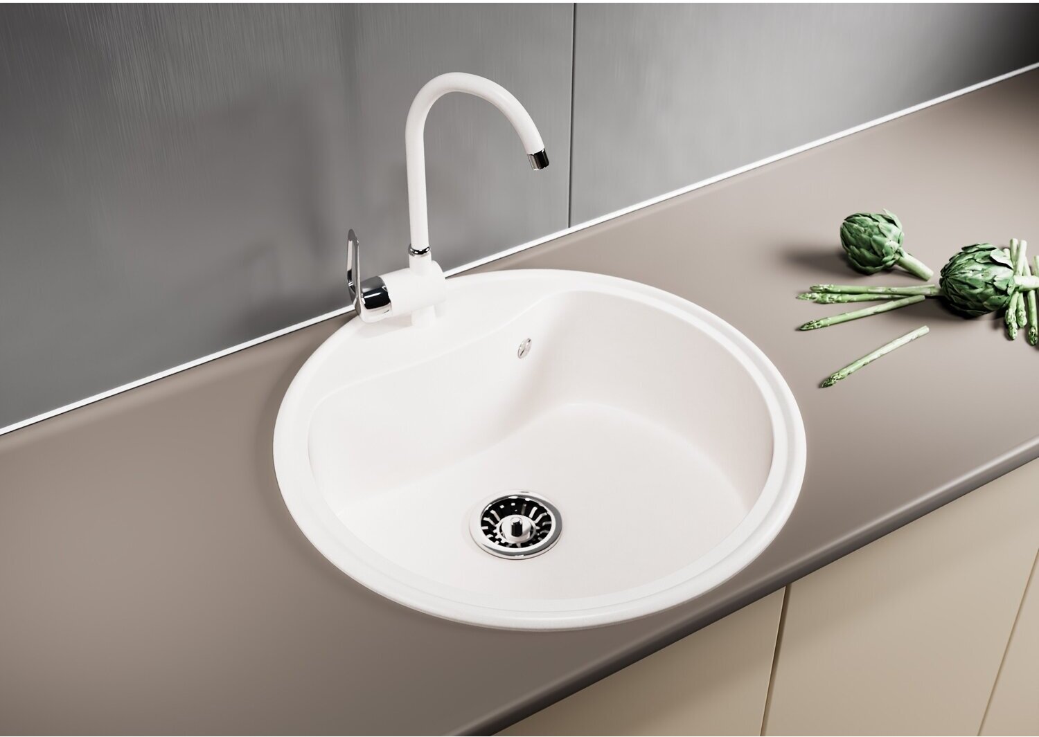 Мойка для кухни из искусственного мрамора круглая MIXLINE ML-GM 10 с сифоном, песочная