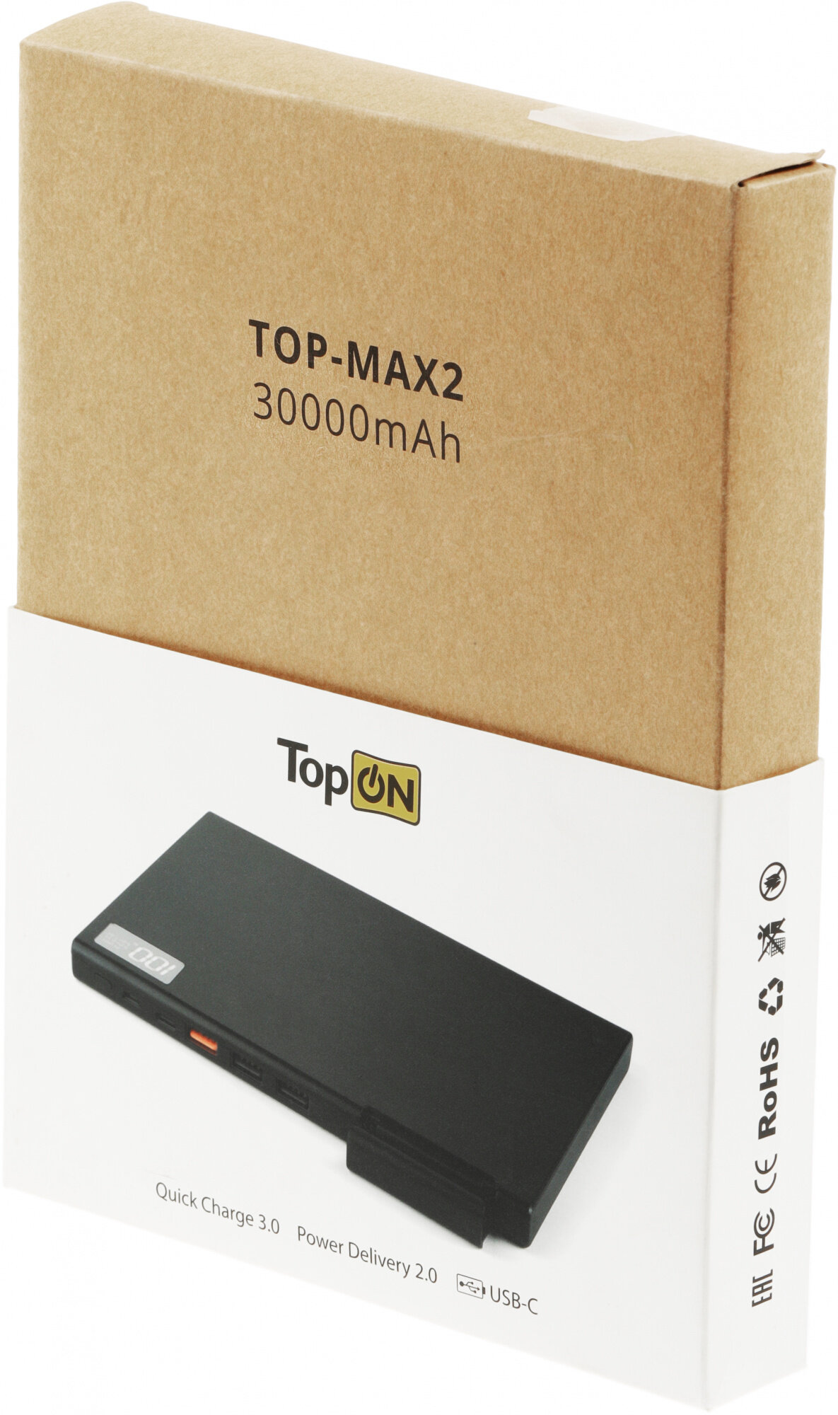 Портативный аккумулятор TopON TOP-MAX2, 30000 mAh, черный, упаковка: коробка