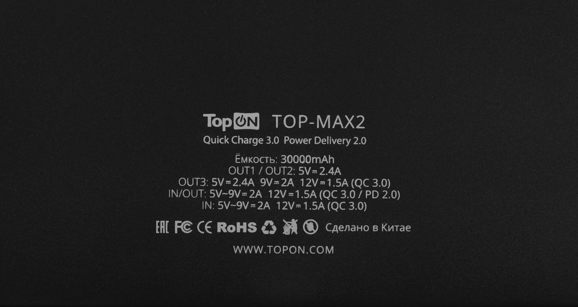 зарядное устройство TopON TOP-MAX2, 30000 mAh черный