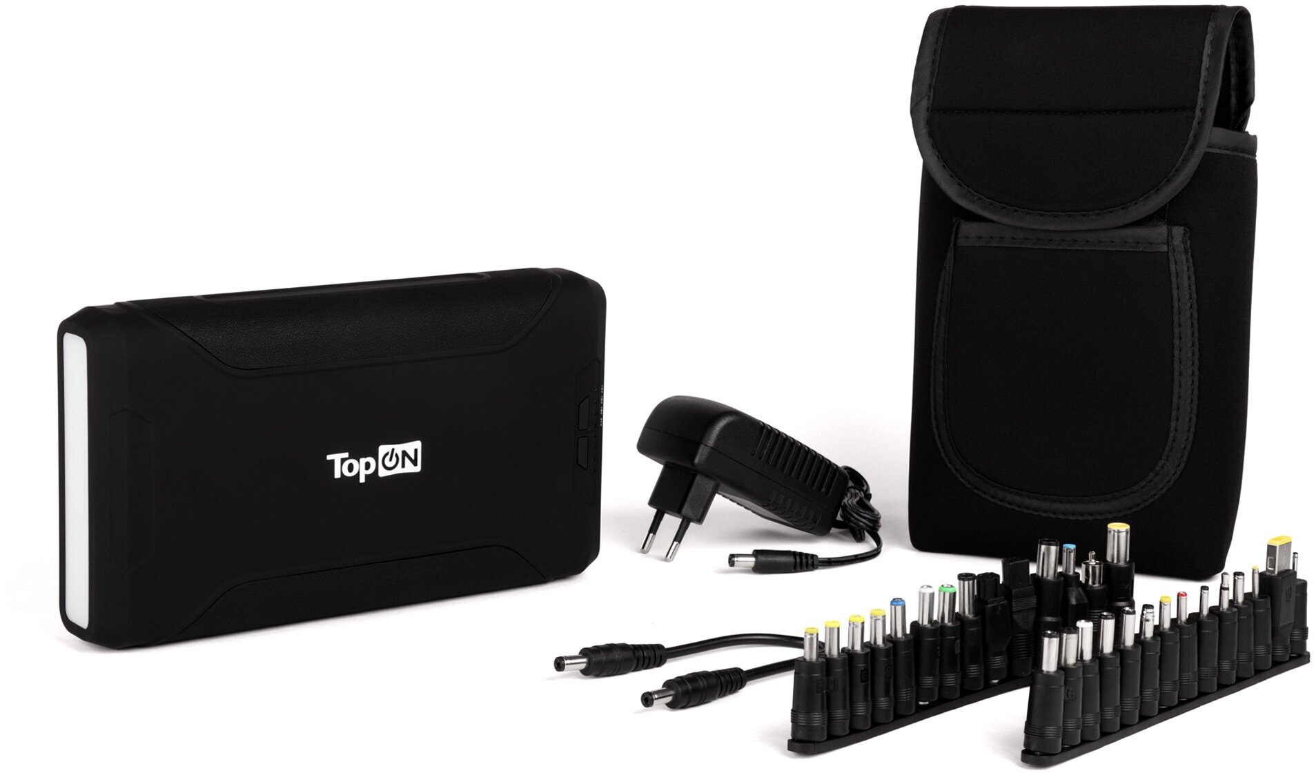 TOP-X72 Внешний аккумулятор TopON TOP-X72 72000mAh 2 USB-порта, автомобильная разетка 180W, набор для зарядки ноутбуков, аварийный свет, фонарь. Черный
