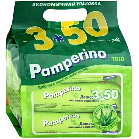 Влажные салфетки Pamperino Trio детские, с алоэ вера, 3 упаковки по 50 шт.
