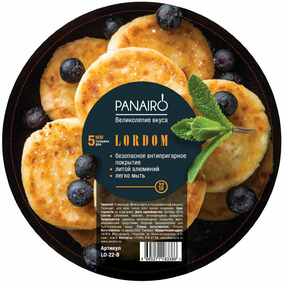 Сковорода с крышкой Panairo "Lordom", литой алюминий, 22 см (LO-22) интересное: