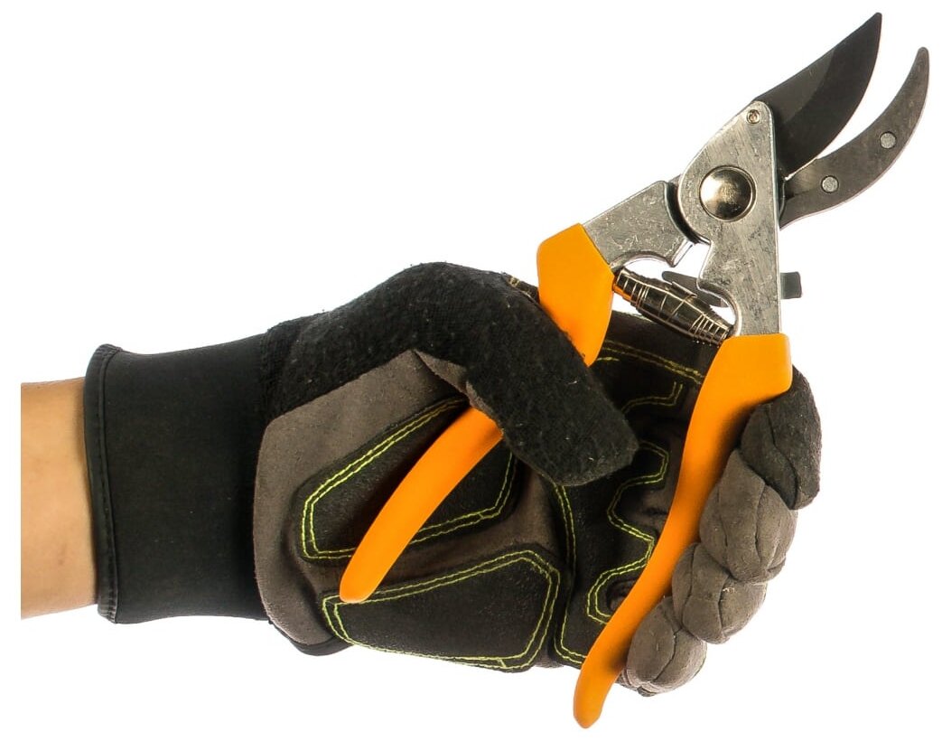Секатор для женской руки будет в самый раз, мне -- мелковат. Предназначен для обрезки небольших веточек до 1см в диаметре.