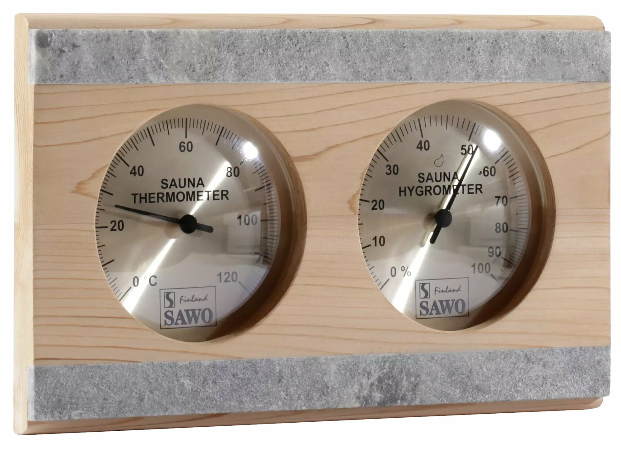 С точностью измеряет уровень влажности и температуру в парилке; Прочный корпус; Большие циферблаты; Нижний порог у термометра - 0. |