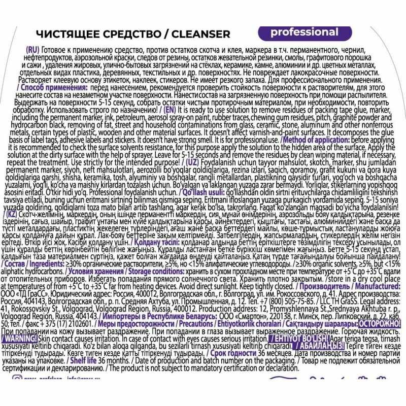 GRASS 117107 очиститель многоцелевой 600мл - antigraffiti: средство для удаления следов скотча,