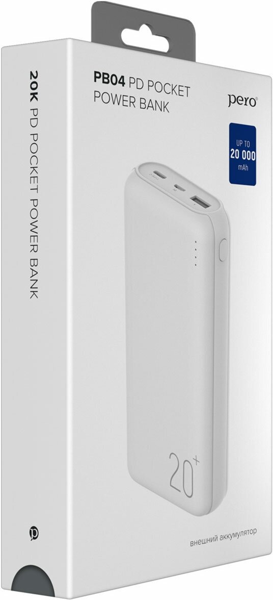 СохранитьPERO PB04 20000 mAh, Li-Pol, output USB-C PD + USB-A QC 3.0, 3A white (Белый) интересное: