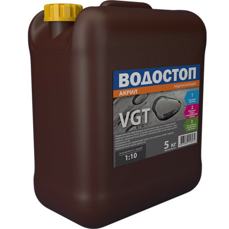 Грунт-Концентрат VGT Водостоп-Акрил 5кг (1:10) Влагоизолятор для Внутренних и Наружных Работ / ВГТ.
