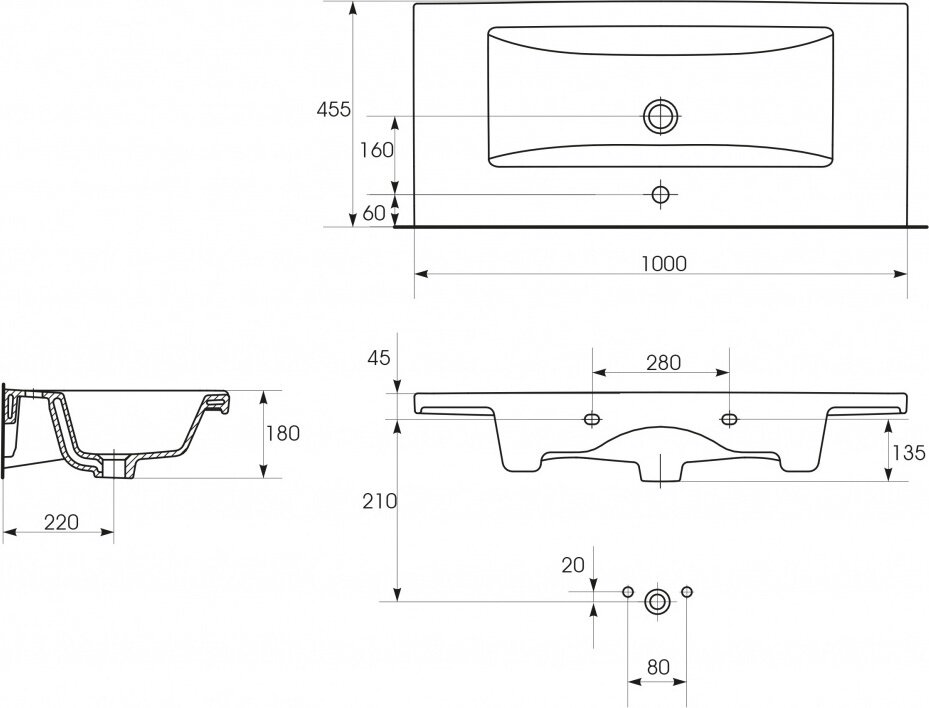 Раковина встраиваемая: COMO 100, 1 отв., белый, Сорт1 интересное: