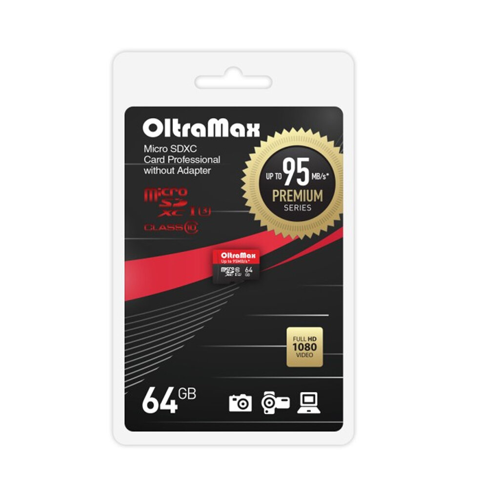 MicroSD 64GB OltraMax Class 10 + SD адаптер Class 10 UHS-1 Premium (U3) с адаптером SD 95 MB/s (OM064GCSDXC10UHS-1-PrU3)