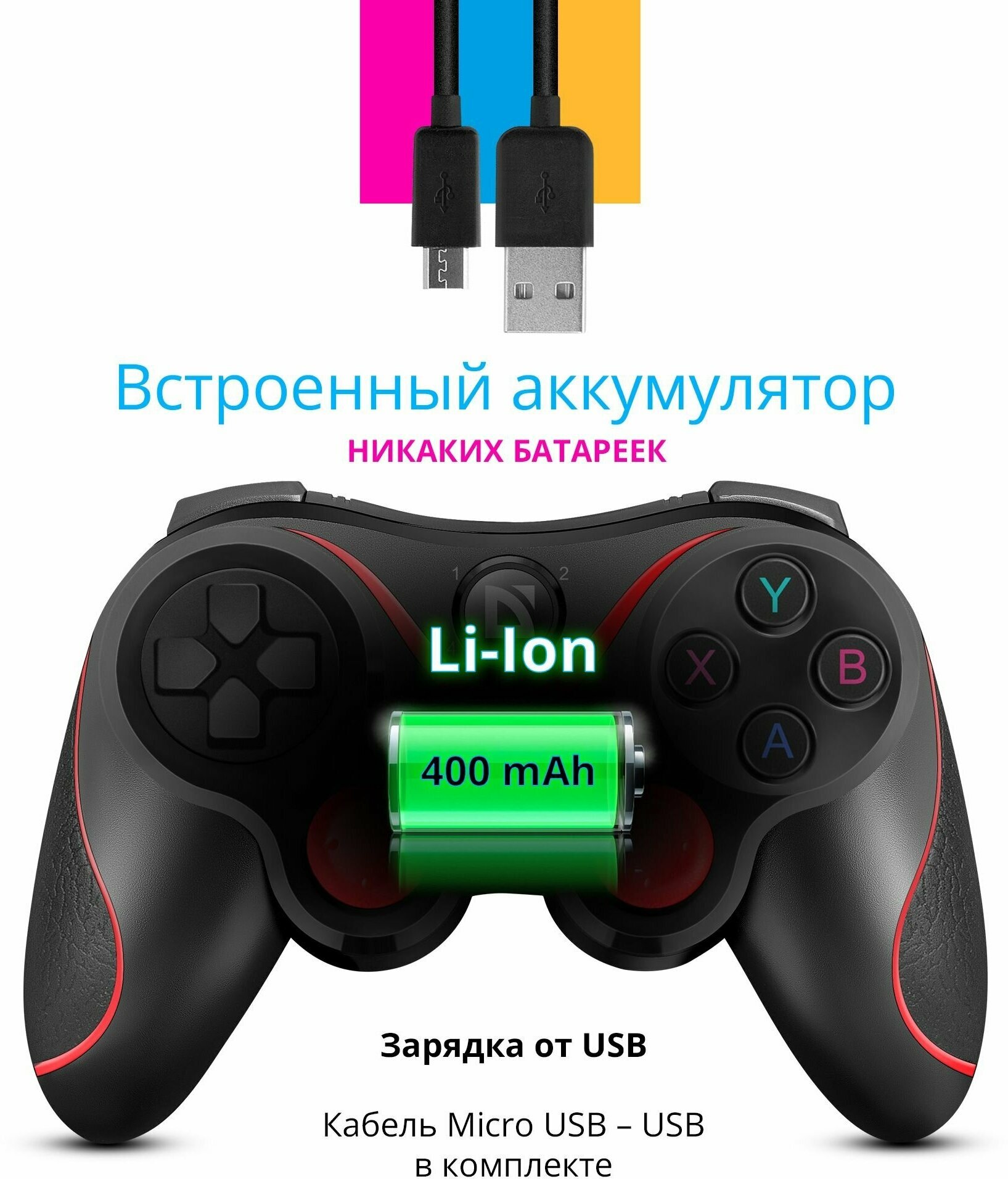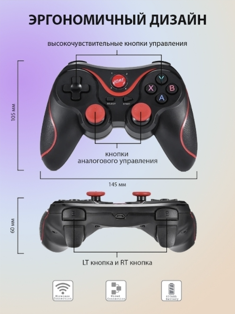 2. Широкий ассортимент поддерживаемых устройств 3. Наличие беспроводного подключения 4. Есть возможность переключить геймпад в режим мышки |