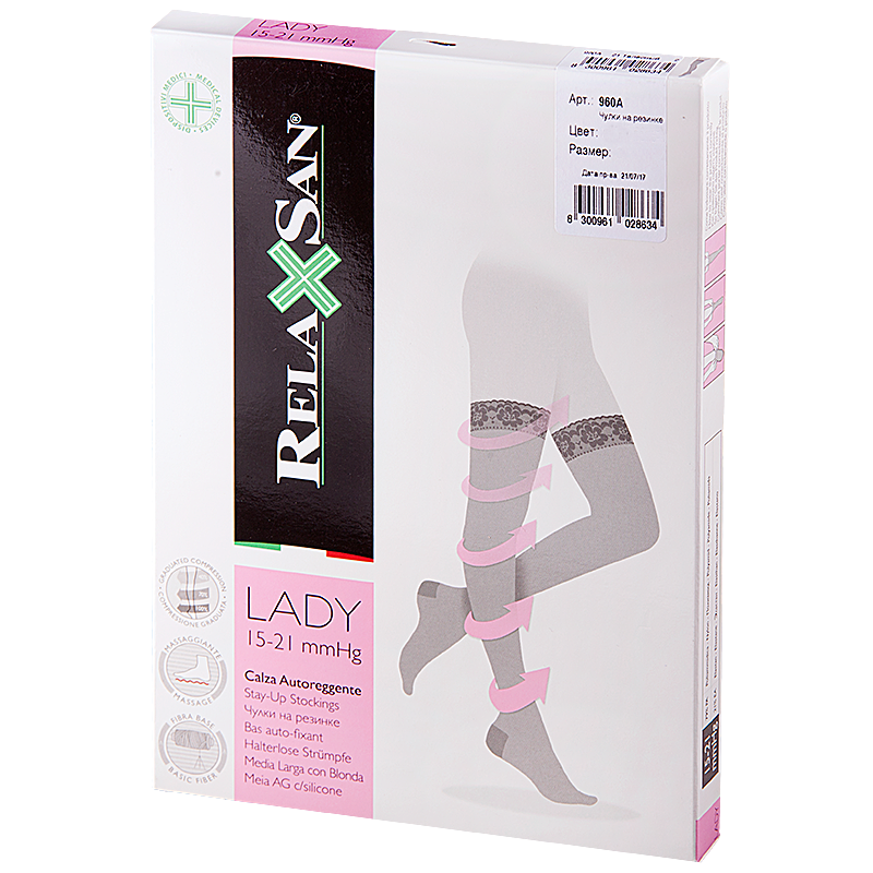 Чулки 1 класс компрессии Relaxsan/Релаксан Stay-Up Lady 960А 70 den р.4 черный