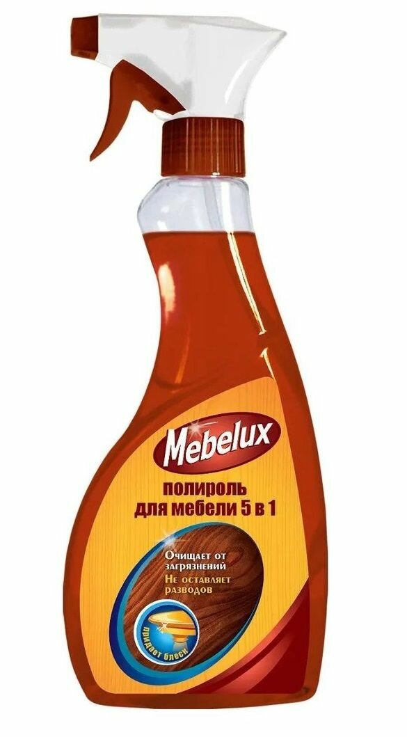 Полироль для мебели для любых поверхностей с распылителем 500 мл, MEBELUX 5 в 1, 4600104032356