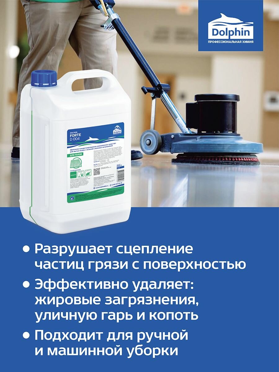 Купить Средство для мытья пола Dolphin для машинной мойки, щелочное, концентрированное, от сильных загрязнений, Forte, 5 л