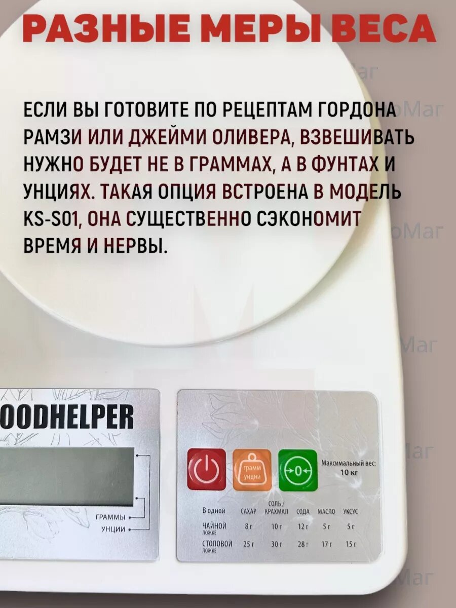 Весы кухонные GOODHELPER KS-S01 максимальный вес 10 кг, белый
