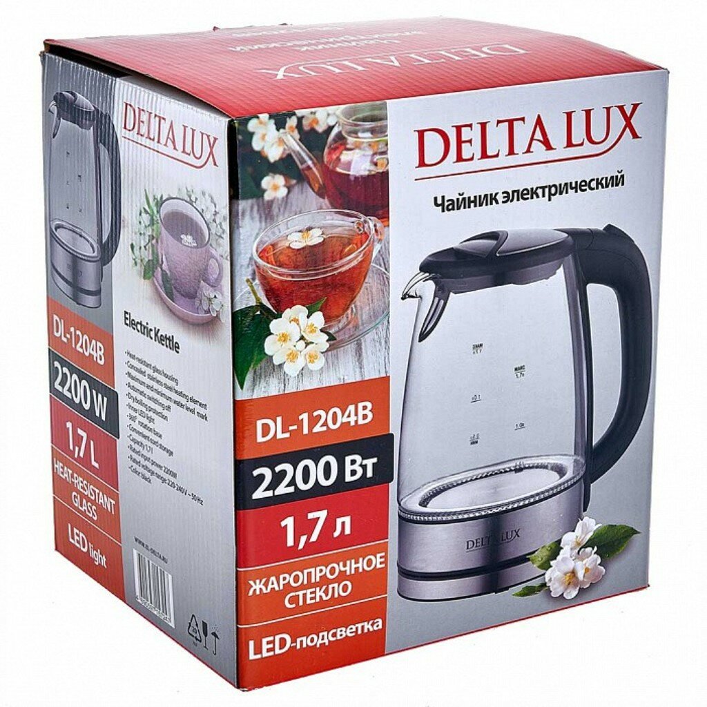 Купить DELTA Чайник LUX DL-1204В корпус из жаропр. стекла, чёрный: 2200 Вт, 1,7 л (6) 0R-00003055
