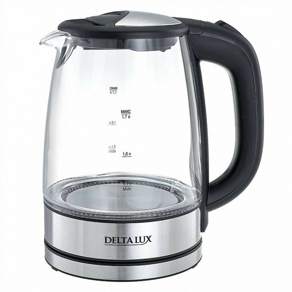 Электрочайник DELTA LUX DL-1204В корпус из жаропр. стекла, чёрный: 2200 Вт, объем 1,7 литра