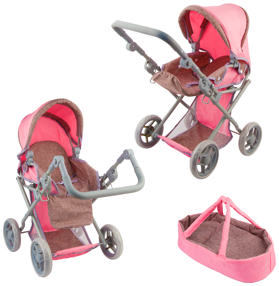 Коляска для кукол трансформер 2в1, с люлькой-переноской, металлическая
