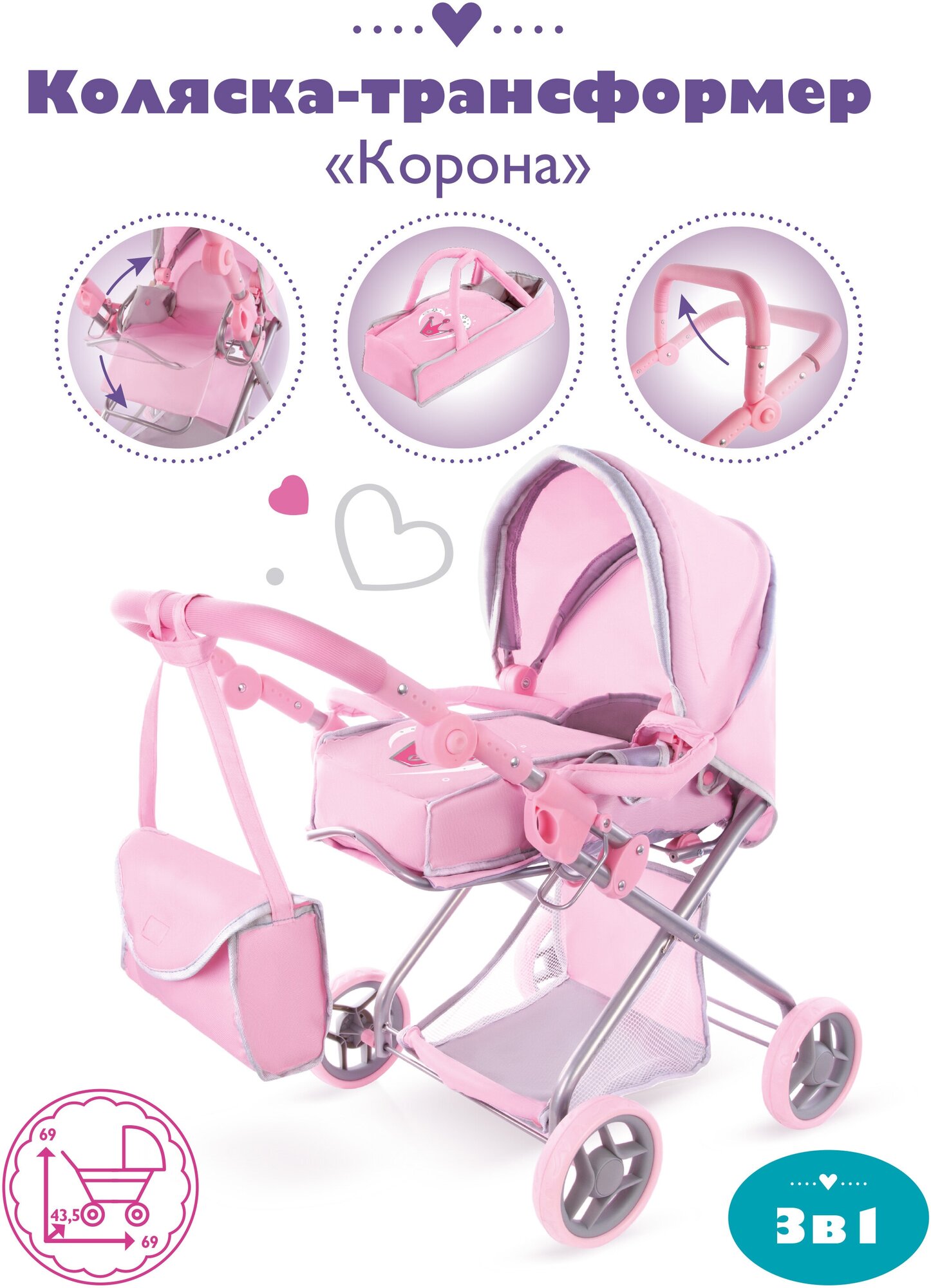 Коляска-трансформер "Корона" 69х43,5х69см интересное: