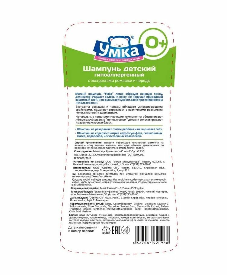 Ниже Вы можете прочитать отзывы на Шампунь детский " Умка" экстракт ромашки и череды, 200 мл, ознакомится с подробными характеристиками, посмотреть интересные обзоры и фотографии на Шампунь детский " Умка" экстракт ромашки и череды, 200 мл.