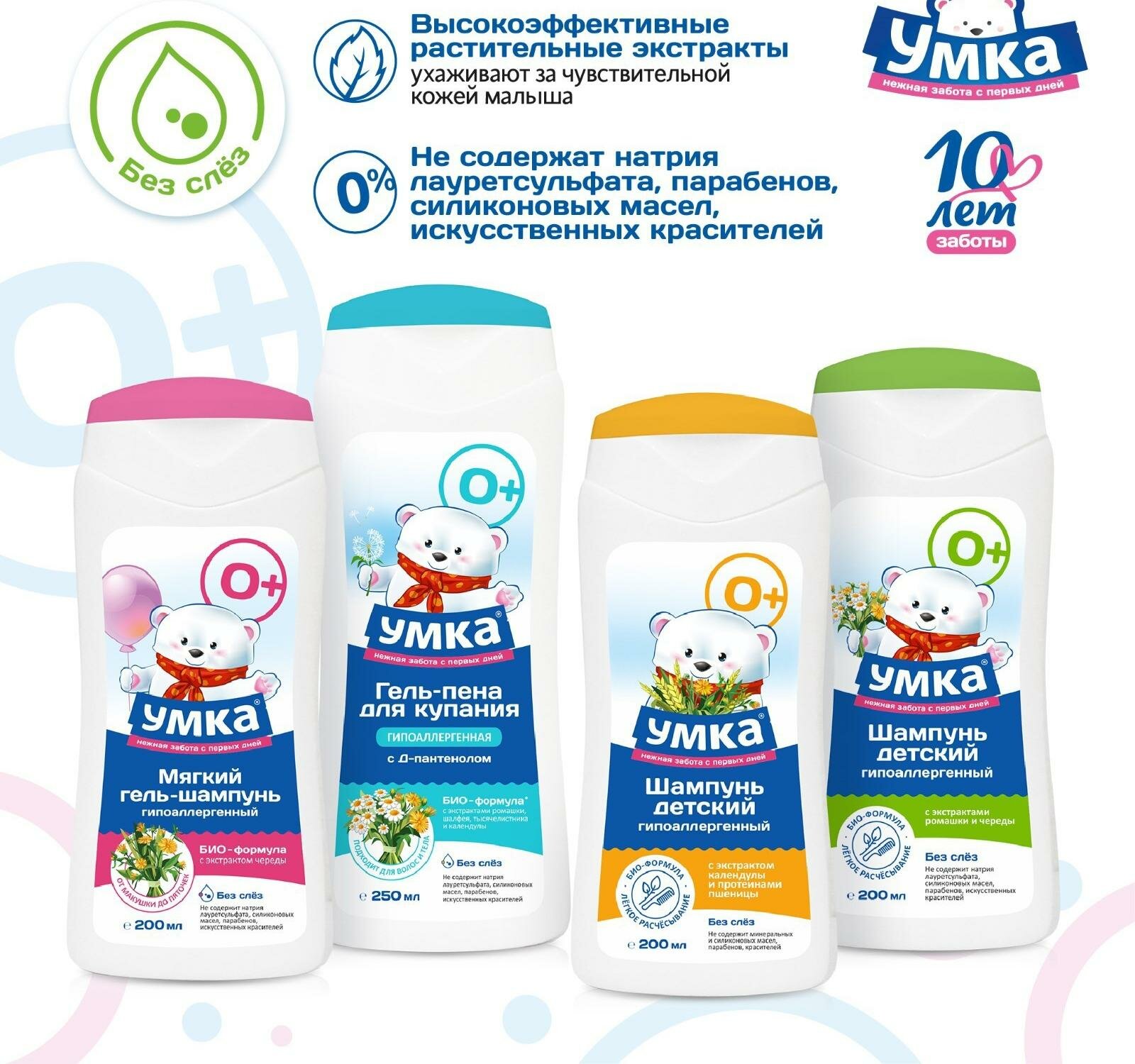 Детский шампунь с экстрактами череды, ромашки, календулы. 200 мл Умка / средство для купания