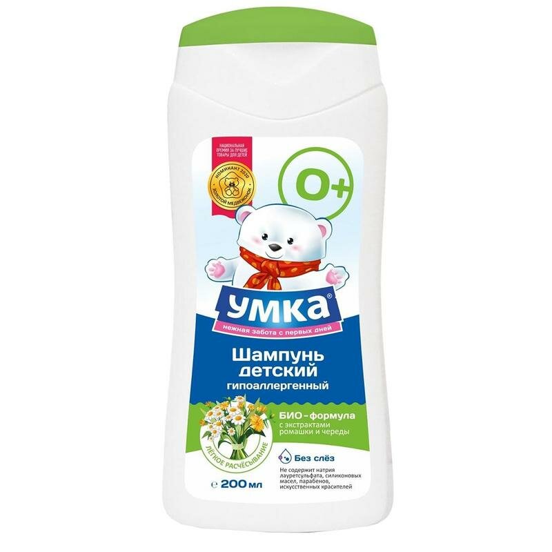 Умка Детский шампунь с экстрактом ромашки и череды, без SLS, SLЕS, силиконовых масел, парабенов, 200 мл