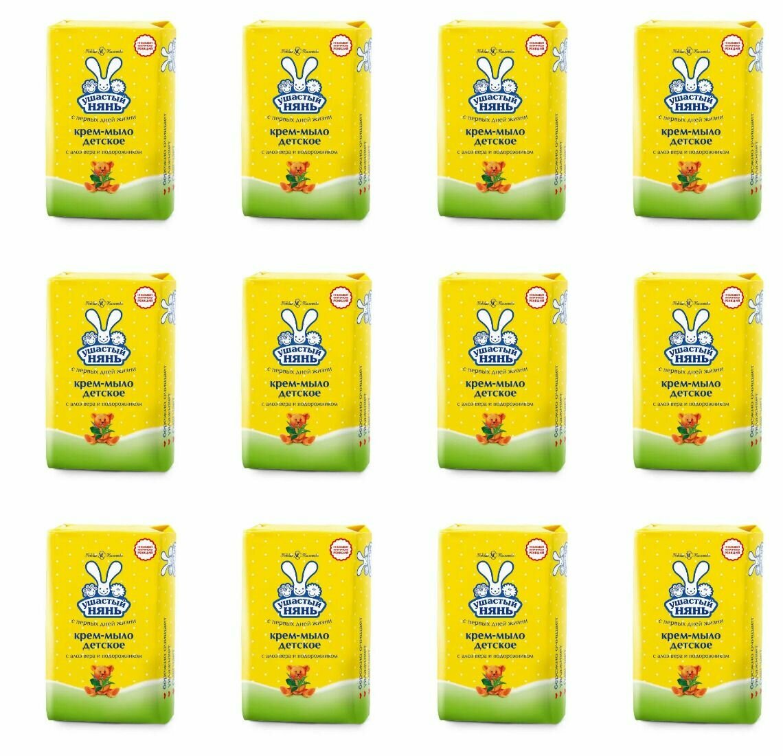 Детское крем-мыло Ушастый нянь с алоэ вера и подорожником 90 г х 12 шт