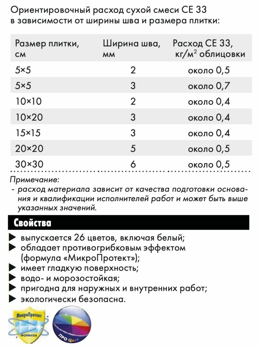 Затирка CE 33 1-6 мм киви 2 кг, 1 шт. в заказе