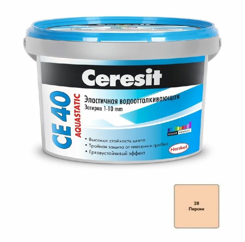 Купить Затирка Ceresit CE40 эластичная водоотталкивающая противогрибковая персик 2кг