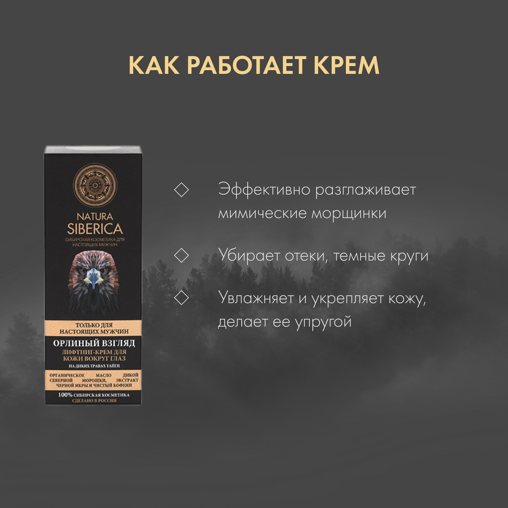 СохранитьЛифтинг крем для кожи вокруг глаз «Орлиный взгляд» Natura Siberica MEN 30 мл интересное: