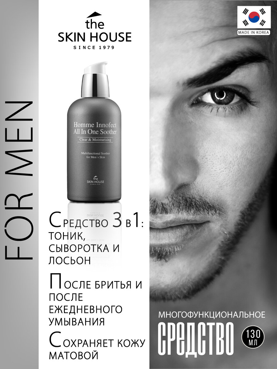 THE SKIN HOUSE Средство для мужчин увлажняющие 3 в 1. Homme innofect all in one soother, 130 мл.